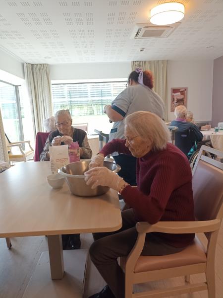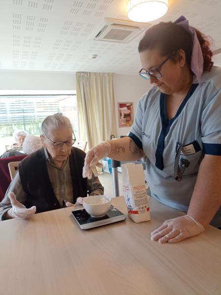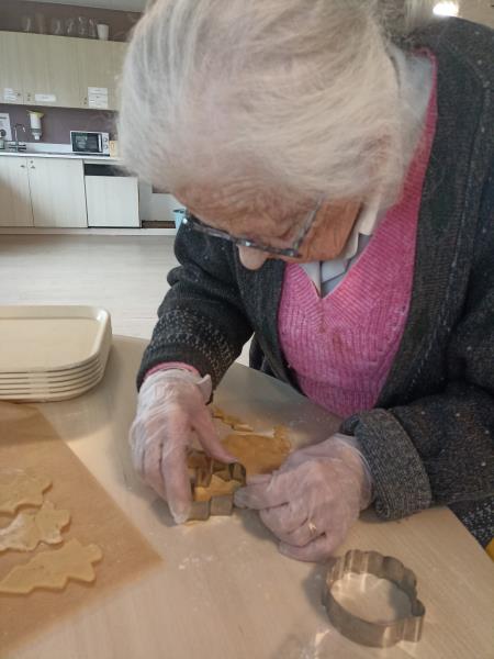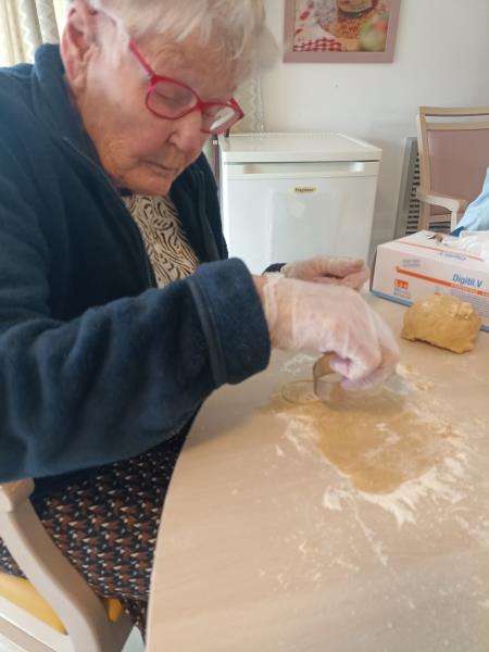 Marie et Sylvie ont animé un atelier gourmand avec les résidents de l'unité de vie adaptée : préparation des petits sablés de Noël, parfumés à la vanille et à la cannelle.