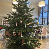 Publiée le 08/12/2025Nous avons reçu notre grand sapin, installé dans le hall pour le grand plaisir des résidents. Avec l'aide de Séverine, notre animatrice, les résidents ont participé à sa décoration. Chacun a pu accrocher des guirlandes et surtout les boules de Noël qu'ils avaient réalisés avec Mme Ma [...] Lire la suite