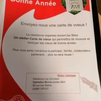 Publiée le 10/01/2021Pour cette nouvelle année, la maison de retraite les Gloriettes organise une opération "carte de voeux". Ce qui permettra, nous l'espérons, aux résidents de recevoir et envoyer les voeux de bonne année 2021 de tout Soissons. Alors soyez nombreux à participer, notre boite à lettre est grande.< [...] Lire la suite