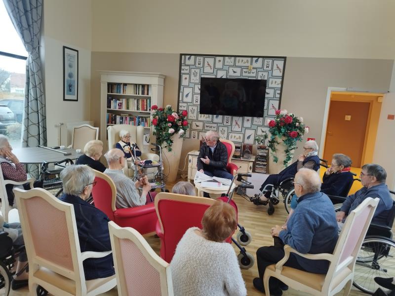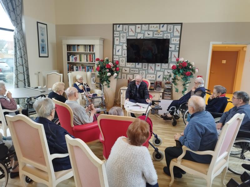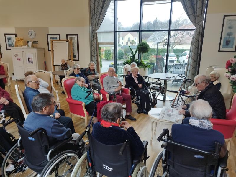Le moment de la revue de presse reste particulier pour nos résidents. Ils sont depuis peu heureux de partager la lecture de l'actualité avec Monsieur le Maire, résident également de la maison de retraite Les Gloriettes . Autour des journaux, les échanges se sont faits spontanés, entre souvenirs, sourires et discussions animées, dans une atmosphère simple et conviviale.