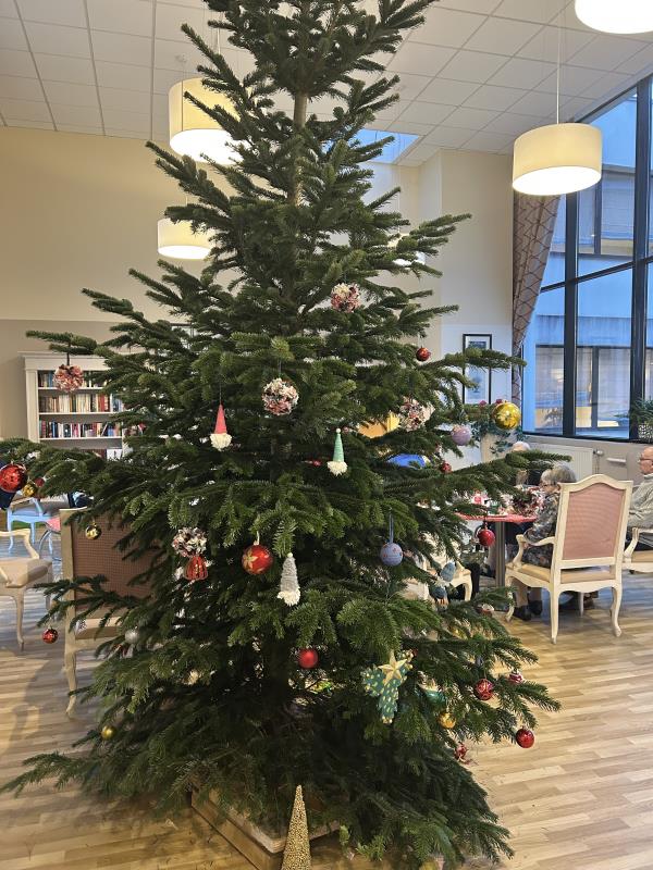 Nous avons reçu notre grand sapin, installé dans le hall pour le grand plaisir des résidents.
